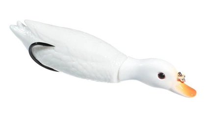 Realistyczna przynęta powierzchniowa imitująca kaczątko. Umiejscowienie podwójnego haka ma działanie antyzaczepowe. Zastosowanie grzechotki oraz przegubowe połączenie głowy kaczki z korpusem powoduje osiągnięcie efektu naturalnego ruchu.