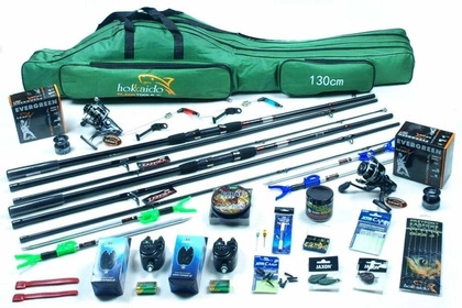 Kompletny, zaawansowany i gotowy do łowienia na grunt zestaw wędkarski z najbardziej potrzebną ilością akcesoriów, pokrowcem, sygnalizatorami do połowu karpi, amurów i innych dużych ryb karpiowatych.