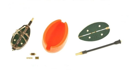 Specjalistyczne koszyczki i formy do techniki METHOD FEEDER. Dzięki umieszczeniu dociążenia z jednej strony zawsze wiemy, jak koszyk ułoży się na dnie. Aby właściwie „nabijać” zanętę, należy stosować przeznaczone do tego formy.