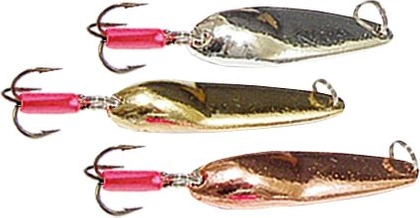 Atrakcyjne i łowne błystki podlodowe w 3 klasycznych kolorach - Złotym, Srebrnym oraz Miedzianym.